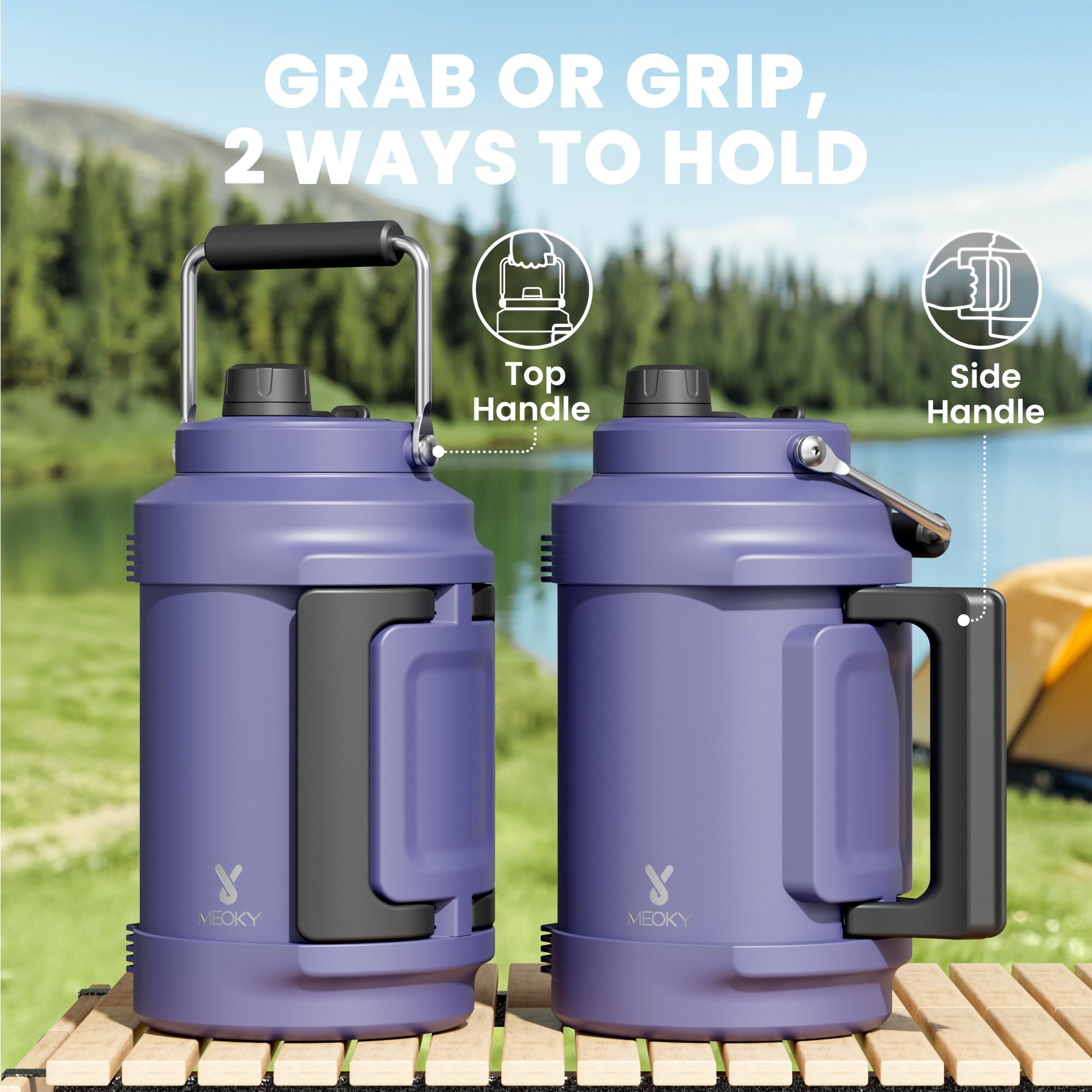 - 48 Hours Ice-Cold, Made to Chill: Featuring triple-wall insulation with copper lining, the Meoky 1 gallon water bottle keeps drinks cold for 48 hours and warm for 24, while making the stainless steel water bottle sweat-free; perfect for exploring the great outdoors