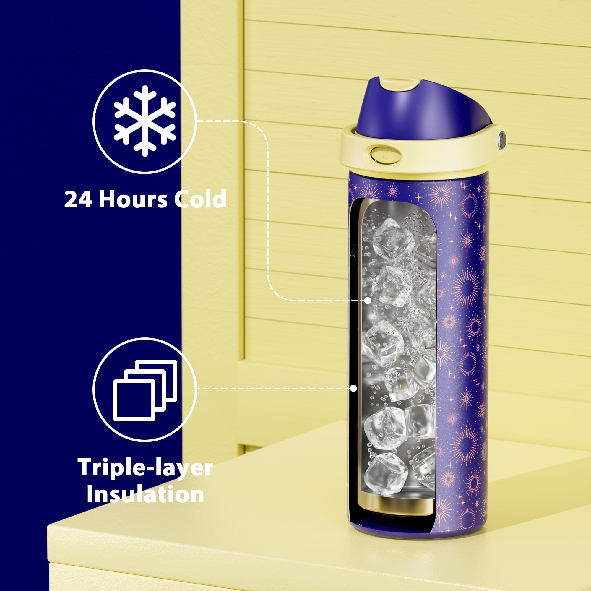 - Protective Base, Protect Your Bottle: A built-in silicone pad absorbs damage and prevents dents and scratches, keeping the bottle's bottom safe; plus, the 24 oz travel water bottle fits most car cup holders; great for road trips